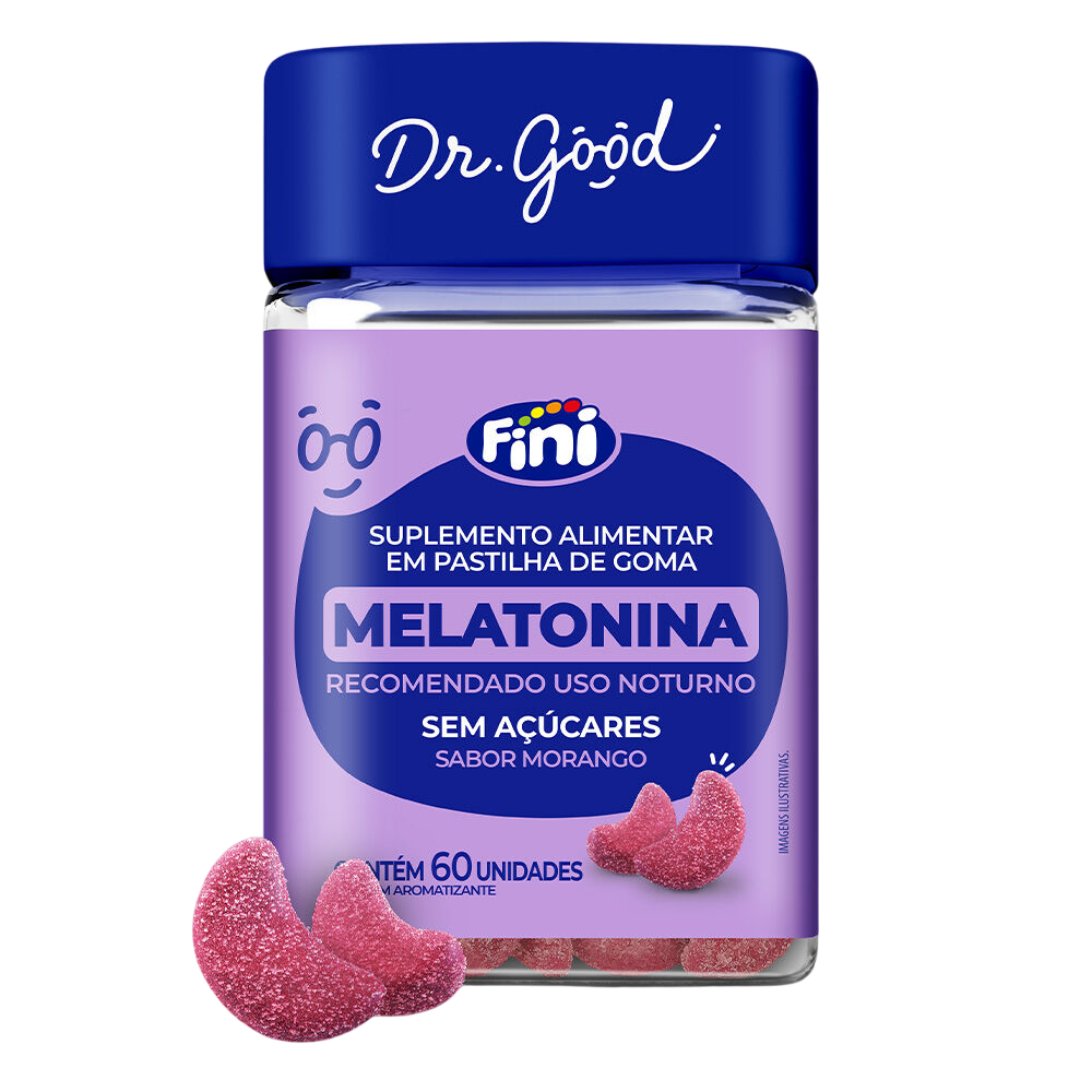 A nova melatonina em goma da Dr. Good + Fini — sem açúcar e com sabor morango.